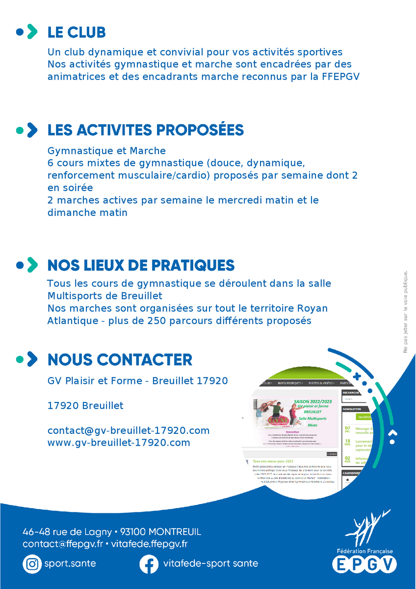 Les nouveautés de la saison 2024/2025 - GV Plaisir et Forme Gym et/ou Marche